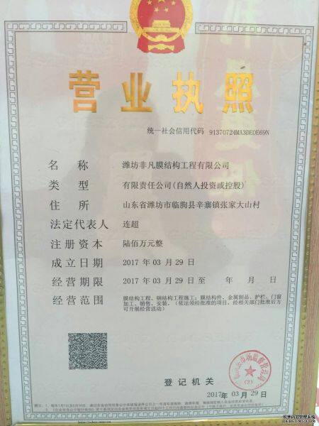 - Weifang Extraordinary Membrane Structure Engineering Co., Ltd.